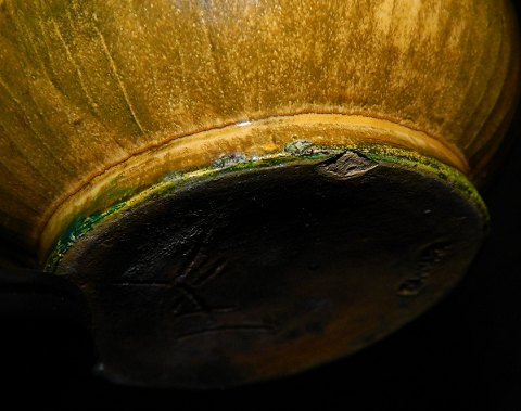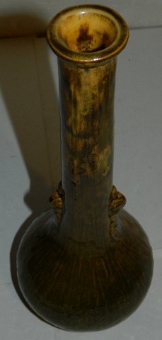 Vase of pottery with long slim neck. Decorated in Svend Hammershøi style. Made around 1930. In good condition. However, one chip at the bottom (see photo). Factory mark HAK on the bottom. 27 cm