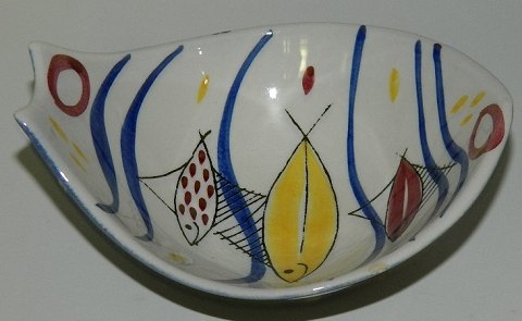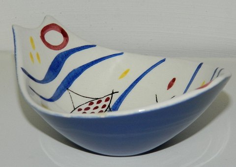 Lille organisk skål i fajance fra Stavangerflint i Norge. Designet af Inger Waage. Fremstår i perfekt stand uden skader eller reparationer. 5½ cm høj, 11½ cm lang og 10 cm bred. Fabriksmærket på bunden.