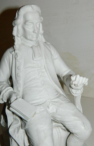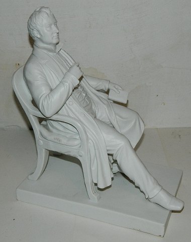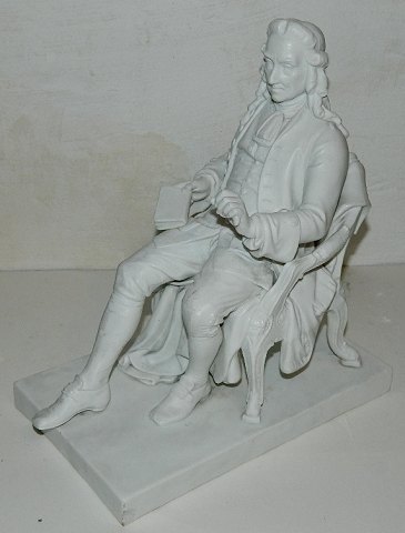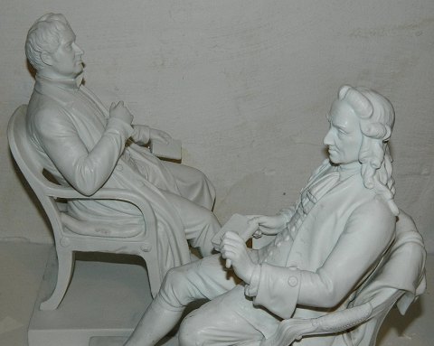 SÆLGES SAMLET: Par figurer i bisquit (porcelæn) Statue af forfatteren Adam Oehlenschläger - udført af H. V. Bissen (1798-1868) samt forfatteren Ludvig Holberg af billedhuggeren Theobald Stein (1829-1901). Holberg´s stok mangler - Håndtaget til denne er endvidere slået af og bortkommet. Ellers fremstår begge figurer i god stand. Fremstillet hos Bing & Grøndahl omkring 1880. Figuren af Oehlenschläger er 30 cm høje og basen måler 15½ cm x 24½ cm. Figurerne står i stor størrelse i bronze foran Det Kongelige Teater ved Kongens Nytorv i København.