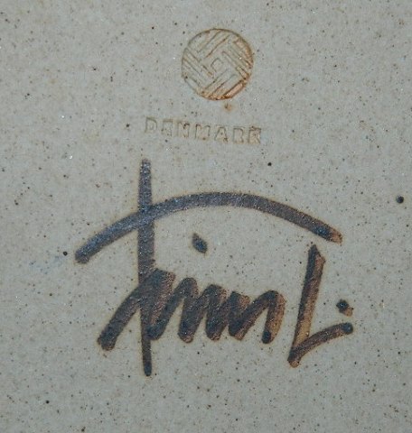 Flaskeformet vase i keramik af Finn Lynggaard. Delvist dækket af blå glasur. Fremstår i perfekt stand. Signeret på bunden med kunstnerens signatur. 12½ cm høj - 14½ cm lang og 12 cm bred.