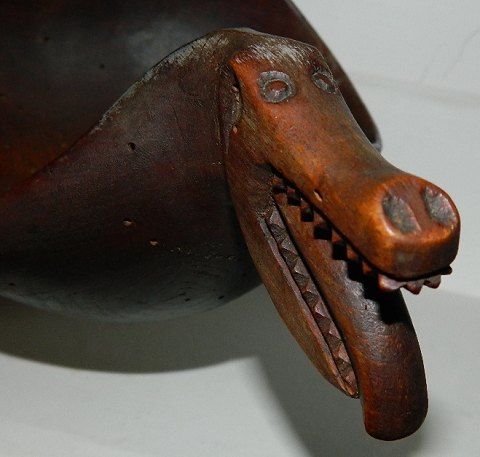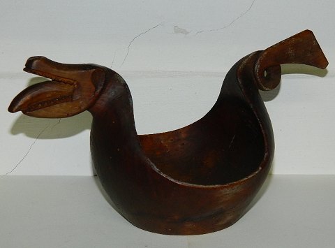 Ølbolle in the shape of a dragon. Cut in one piece of wood. No damages. Normal Wear of use and Worm holes. 19th. century. 14 cm high and 26 cm long