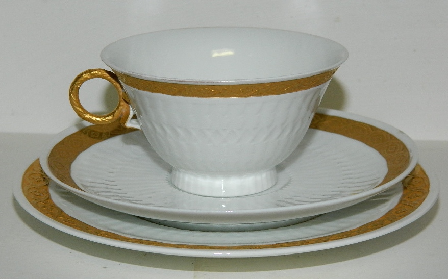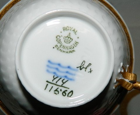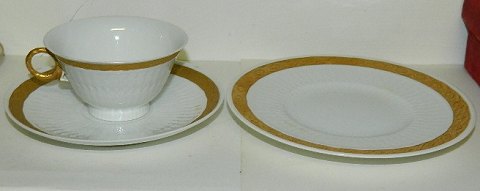 Royal Copenhagen cup Gold Fan Model No 414/11560) Set: Cup and saucer cost DKK 285, - (one sets available) Royal Copenhagen cake plate - 15½ cm - in Gold Fan model number 414/11522 costs DKK 150, - for one (6 pcs. Available). No damage or repairs to these parts. Every piece factory first production.