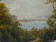 Platte i terracotta fra Peter Ipsen, København, fra omkring 1900. Dekoreret med kystmotiv fra ubekendt område. Fremstår i god stand. Et par ridser / pletter i overfladen hvorved bemalingen er væk. Fabriksmærket på bagsiden sammen med modelnummer. 25 cm i diameter.