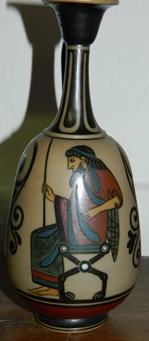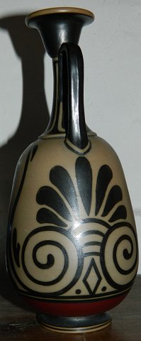 Pitcher in stoneware from Lauritz Hjorth, Bornholm. Form and decoration in the Greek style. Made around 1920. Is in perfect condition with no damage or repairs. Factory marks on the bottom. 20 cm high.