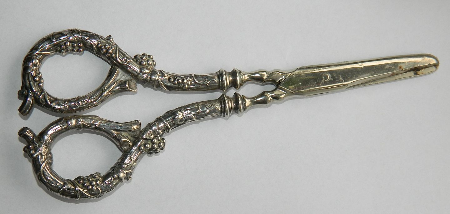 Druesaks i sølv. Fremstillet omkring 1900. I god og brugbar stand. Sølvstemplet. 16½ cm lang.