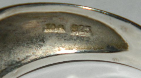 Sterling silver ring with blue stone. Gold around the stone. Stamped JAA 925