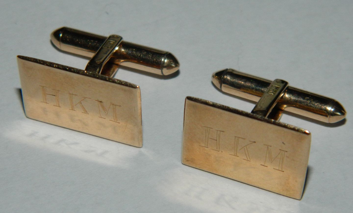 Pair of cufflinks in 18K gold. Initials engraved HKM on the surface. Stamped 18K. Measures: 1,8 cm x 1,2 cm.