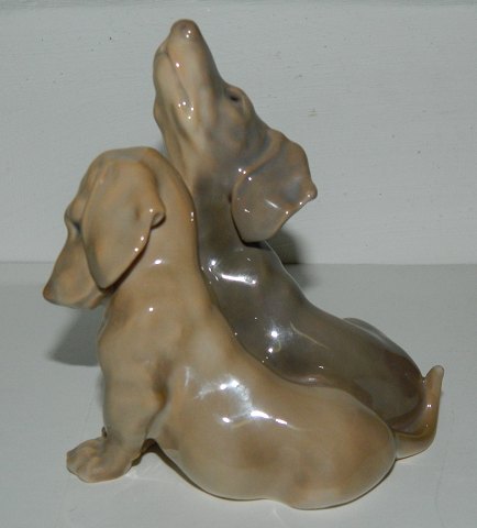 Figure of porcelain of a pair of dachshunds from Bing & Grondahl. Model Number 1805. In good condition. Factory second production. No damage or repairs. Factory marks on the bottom.10 cm high.