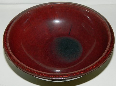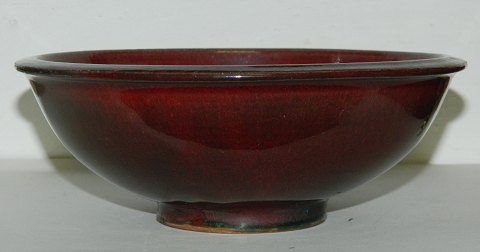 Stentøjsskål dækket af rød glasur fra Royal Copenhagen. Fremstillet i 1928. Fremstår i god stand uden skader eller reparationer. Fabriksmærket samt produktionsår på bunden. 6 cm høj og åbningsdiameter på 16 cm.