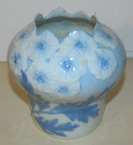 Vase i porcelæn fra Bernard Bloch & Co., Tyskland fremstillet i perioden 1895-1918. Organisk vase dekoreret med blade og blomster i relief. Fremstår i perfekt stand. Ingen skader eller reparationer. Fabriksmærket på bunden med E over en krone samt modelnummer 1069/1900. Vasen er 14 cm høj.