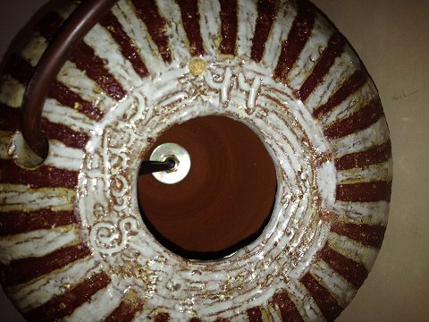 Bordlampe i keramik af Gutte Eriksen. Fremstillet på eget værksted i 1944. I perfekt stand. Signeret af kunstneren "Gutte" samt produktionsår. 25 cm høj incl. Montering