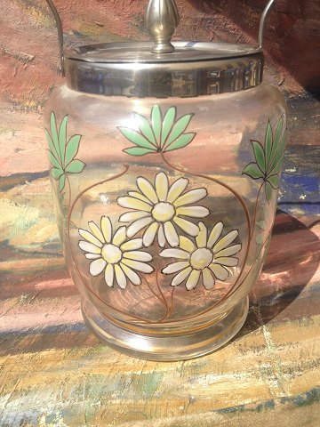 Kiksespand eller bisquitspand fra Fyns Glasværk med bemalet motiv med blomster. Nummereret på bunden. Fremstår i perfekt stand. 20 cm høj incl. Toppen af låget.