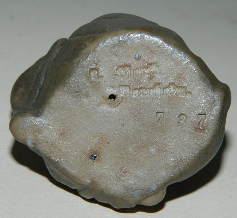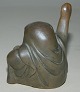 Figur i keramik af Buddha med løftet arm fra Lauritz Hjorth, Bornholm. Figuren fremstår i god stand. Fabriksmærket på bunden. 5 cm høj.