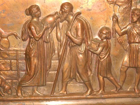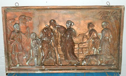 Scene from Bertel Thorvaldsen's Alexanderfrise "Alexander's Triumph" 1812 made of copper. This plate is in good condition with no damage or repairs. Guess this plate was made in the early 20th. century. Dimensions: 19½ cm x 34 cm.