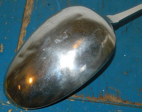 Serving spoon in silver with provincial stamps from the mid-19th century. NOrmal Wear of use specially on the head! No damage or repairs. Silver stamps on the back. Weight: 170 grams. 37 cm long.