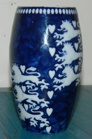 Bing & Grøndahl, Copenhagen, Danish China Works: Vase i porcelæn med dekoration af "De Tre Løver", der indgår i et tidligt dansk Rigsvåben. Fremstillet i slutningen af 19. århundrede. Vasen fremstår i perfekt stand uden skader eller reparationer. Fabriksmærket på bunden. 13 cm høj