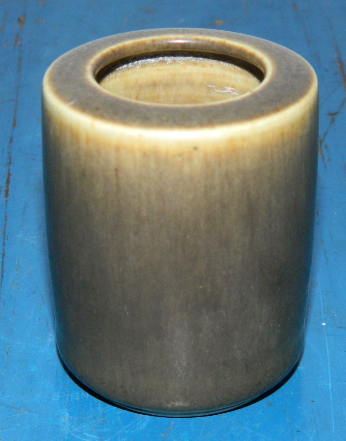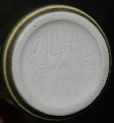 Stoneware vase from Palshus. Covered by a brown haresfurglaze. Factory first production. In good condition with no damage or repairs. At the bottom incised Palshus DENMARK PL-S (founder and designer Per Linnemann-Schmidt) and model number 1209. 6 cm high.