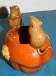 Bowl in pottery from the pottery factory Michael Andersen & Son, Bornholm. The bowl is made for Grosser C. V. Kjær around 1920. Decorated with flower and pair of mouse on the edge. In good condition. Signed with CVK's familiar red seal on the bottom. 12 cm high.