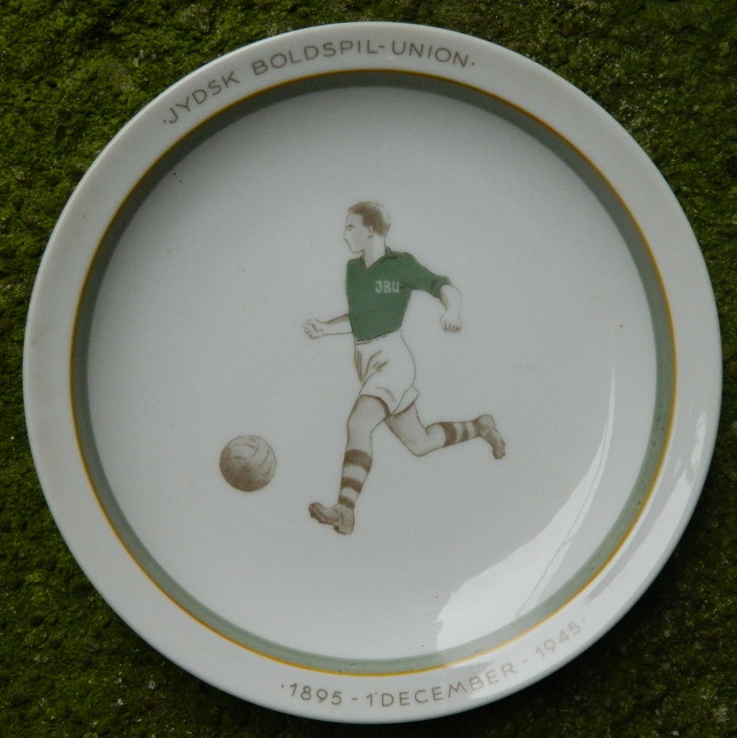 Commemorative Plate from Royal Copenhagen: JBU Jutland Football Association (current DBU Jylland) 50th anniversary in 1945. The plate is in good condition with no damage or repairs. Factory first production. Factory marks on the back. 17 cm in diameter.