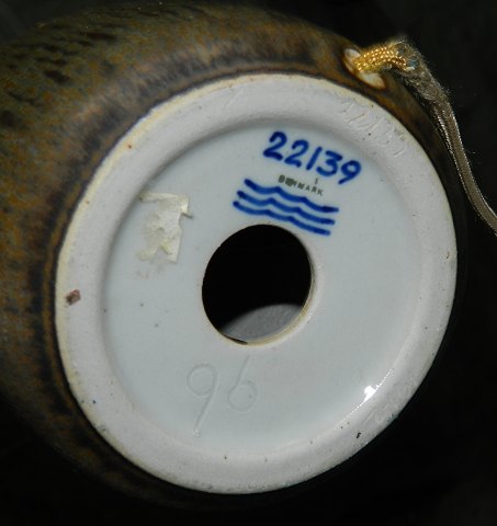 Lampefod i stentøj fra Royal Copenhagen. Dækket af en smuk solfatara-glasur. Designet af Gerd Bøgelund. Fremstår i god stand uden skader eller reparationer. 1. sortering. Trænger dog til ny ledning ! Mål: 36½ cm - 53 incl. montering.