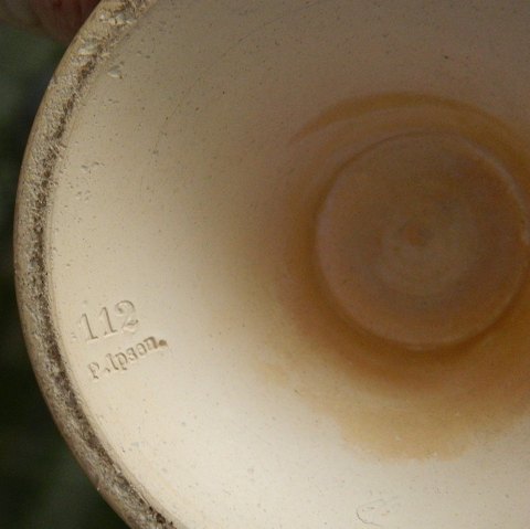 Underdelen / fod til skål i terracotta fra Peter Ipsen, København, fra omkring 1900. Fremstår i god stand uden skader eller reparationer. Fabriksmærket på undersiden. 10½ cm høj.