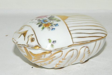 Skål med låg i porcelæn fra Royal Copenhagen. Fremstillet mellem 1900-1923. Organisk i formen. Dekoreret med tre svaner på låget. Dekoreret i bunden af skålen. Fremstår i perfekt stand. Ingen skader eller reparationer. 1. sortering. Fabriksmærket på bunden. Modelnummer 23/10. Mål: 5½ cm høj, 17 cm lang og 13½ cm bred.