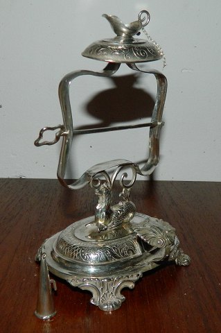 Stabelstage i sølv fra 19. århundrede. Fremstår i god stand. Stemplet med mestermærke på undersiden af foden. 15½ cm høj.