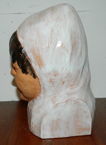 Buste i keramik af dreng i nationaldragt fra Grønland. Fremstår i god stand uden skader eller reparationer. Signeret af ubekendt kunstner J. B. i 1950. Fabriksmærket på indersiden. 23½ cm høj.