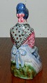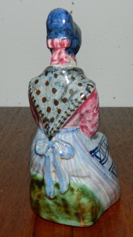 Figur af ung kvinde der sidder og strikker fra L. Hjorth. Fremstår i god stand uden skader eller reparationer. Fabriksmærket på bunden. 9½ cm høj
