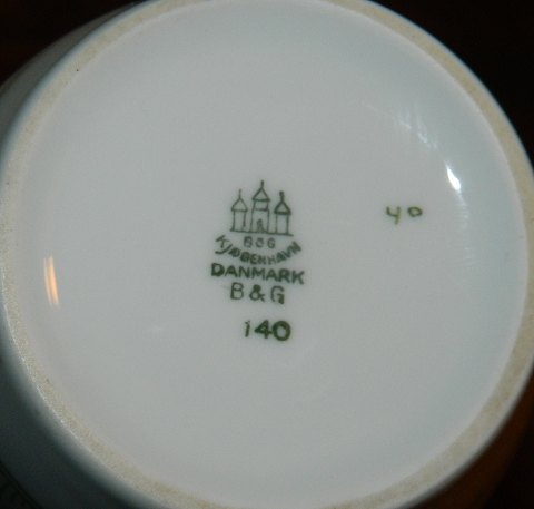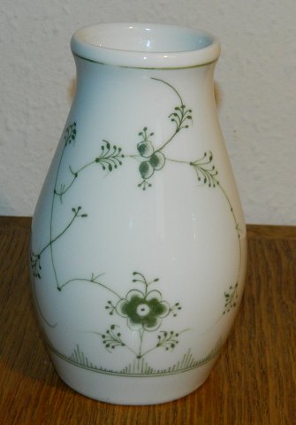 Vase in porcelain from Bing & Grondahl. Green fluted decoration on iron porcelain. On the front logo for Hornbækhus. In perfect condition. Factory marks included model no. 140 on the bottom. Factory first production. The vase is 15 cm high.
