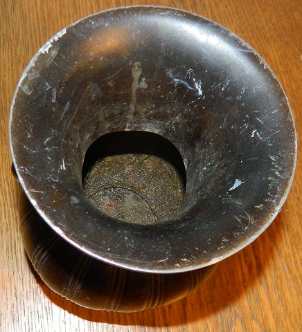 Tung vase med hanke i diskometal af Just Andersen ca. 1940. Fremstår med brugsslid som fremgår af billederne. Modelnummer 1925. Ingen skader eller reparationer. H: 21 cm og Ø: 13½ Instagram #temaantik