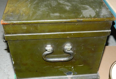 Pengekiste eller skrin / opbevaringsboks i metal og træ. Tre låse ! To hanke. Fremstår i god stand. Almindeligt brugsslid. Fremstillet omkring 1900. Mål: Længde: 49 cm Dybde: 34 cm Højde: 28 cm.