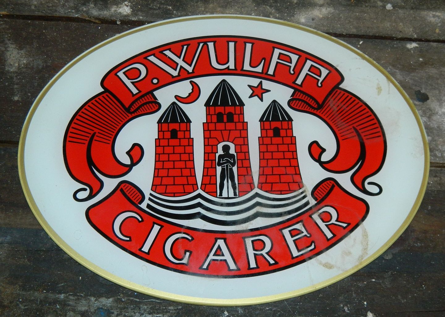 Reklame skilt i glas fra P. Wulff Cigarer. I god stand uden skader eller reparationer. Mål: 28 cm x 21½ cm