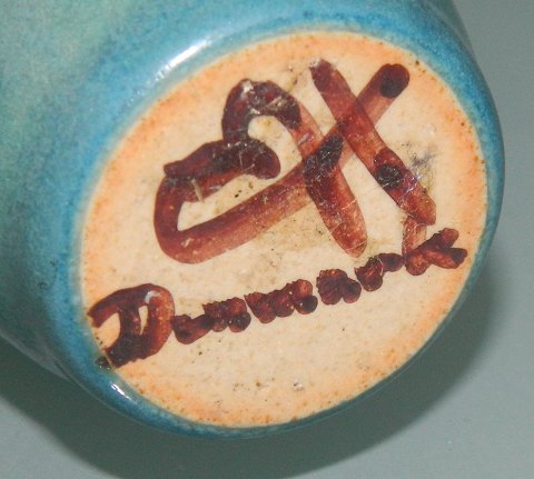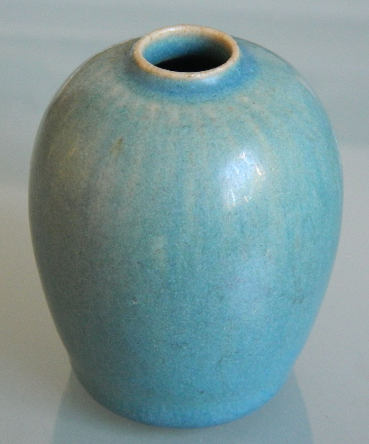 Miniature vase i stentøj dækket af turkis glasur af Eigil Hindrichsen. Fremstillet på eget værksted i Espergærde. Vasen fremstår i perfekt stand. Signeret af kunstneren på bunden. 6 cm høj