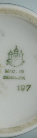 Art Deco stil: Kande med hank og låg fra stellet Løvfald fra Bing & Grøndahl. 1. sortering. Fremstår i perfekt og nærmest ubrugt stand. Fabriksmærket på bunden sammen med modelnummer 197. Højde incl. prop: 17 cm høj