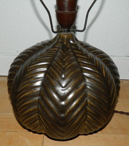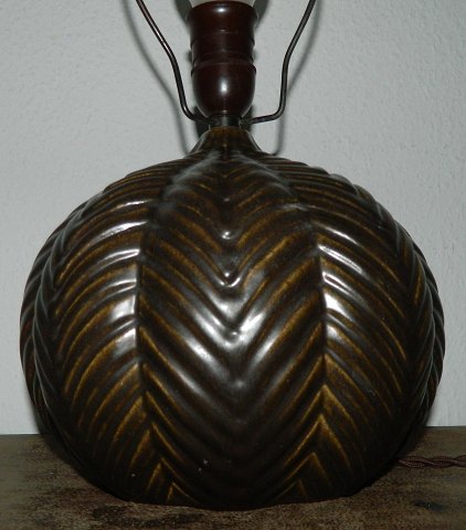 Art Deco table lamp from MA&S: Lamp base in ceramics. Attributed product fraMichael Andersen & Son on Bornholm. Made around 1940. Brown painted over fishbone decoration in relief around the lamp. Open bottom - hole inside! No damage or repairs. Incised model number inside. No factory mark. In perfect condition. Dimensions: - incl. Mounting 40½ cm - 21 cm in diameter. ON DISTANCE IT LOOK LIKE A LAMP IN BRONZE!