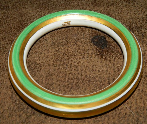 Kgl. armbånd i porcelæn i bemalet porcelæn. Fabrikkens logo - Tre Bølger - påmalet. Original gaveæske fra Royal Copenhagen. Alle dele i perfekt stand. Mål indvendigt: 6½ cm Ydre mål: 9 cm.