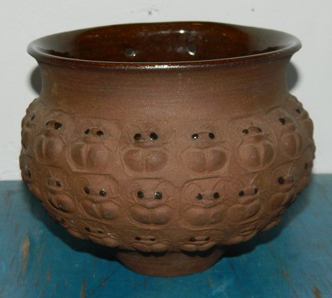 Bowl in ceramics by Gutte Eriksen. Ongoing bluish glaze that stops before the bottom is reached! Whitish glaze inside. In perfect condition. The artist's signature - stamp logo - on the bottom. H. 8 cm Ø. 12 cm.