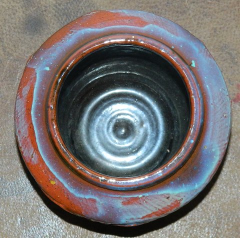 Vase i keramik af Gudrun Meedom (1915-2011). Dekoreret med stime af fladfisk i relief. Herpå delvist dækket af blålig glasur. Fremstår i perfekt stand uden skader eller reparationer. Vasen er 13 cm høj og bredest diameter på 15 cm. Åbningsdiameter på 9 cm. Signeret af kunstneren på bunden med indridset GMee.