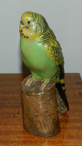 Aluminia figure of green budgerigar in ceramics by Jean Grut. Model number 478/3188. Dimensions: 15 cm high