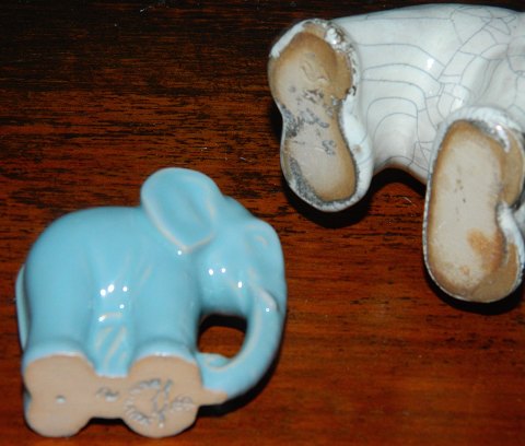 Elefant i hvid krakkeleret glasur fra Michael Andersen & Søn. I god stand. Fabriksmærket med modelnummer på undersiden. 9 cm høj ...... Lille elefant af Svend Lindhardt. I god stand. Fabriksmærket på undersiden. 5 cm høj.