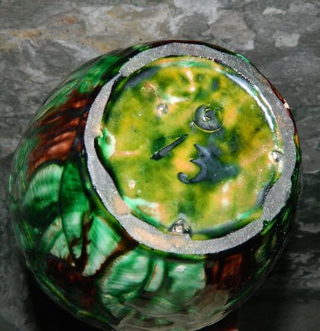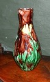 Vase in ceramics from Roskilde pottery 1915-21. Decorated with yellow flower in relief. In good condition with normal wear of use. No damage or repairs. Model number 13 engraved on the bottom. The vase is 31 cm high.