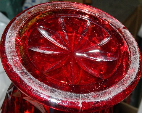 Vase in red pressed glass from Funen Glassworks from around 1920. In good condition with no damage or repairs. 17 cm high