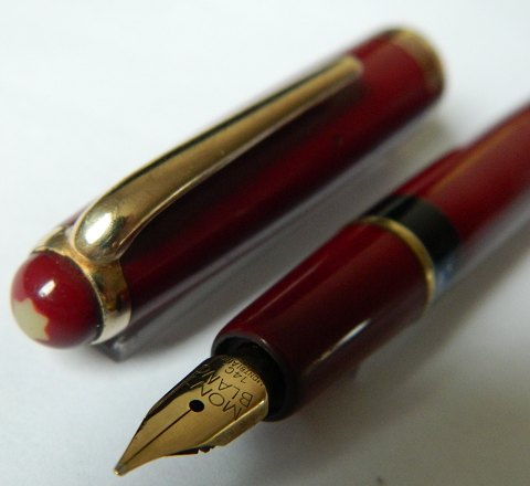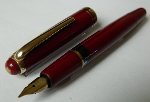 Bordeaux Montblanc 252 fyldepen med piston påfylder. Klar til at blive brugt. Fungerer fint. Alle dele originale Montblanc inclusive 585 guld spids. 12½-13 cm lang.