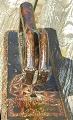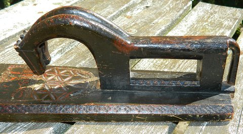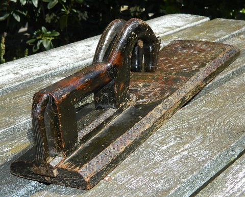 Original painted mangle richly decorated with double horse head also in the form of creative and well-executed karvsnit coloring including manufacture 1850. Nice patina. No damage or repairs. Dimensions: 60½ cm long - respectively. 10½ and 15½ cm cm wide. 14½ cm high.