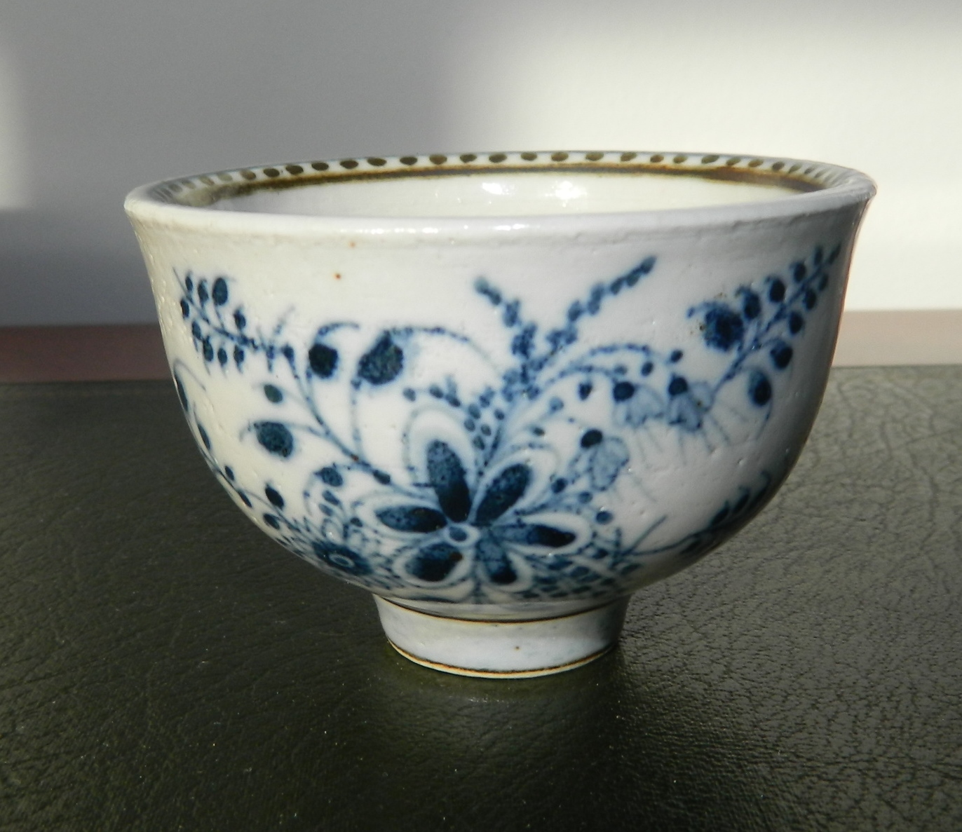 CHINESE STYLE: Bowl in stoneware from Royal Copenhagen with floral decoration. Factory marks and artist signature on the bottom. Factory first. Measurements: 6 cm high and 8 ½ cm opening. The foot measuring 3 cm in diameter.