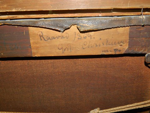 Maleri af Godfred Christensen 1845-1928: Olie på lærred 1869. Skovparti med sø. Mål 35 cm x 52 cm. Mål med ramme 48½ cm x 69 cm. I god stand uden skader eller reparationer. Signeret i nederste højre hjørne med G.C. Trænger til at blive renset !