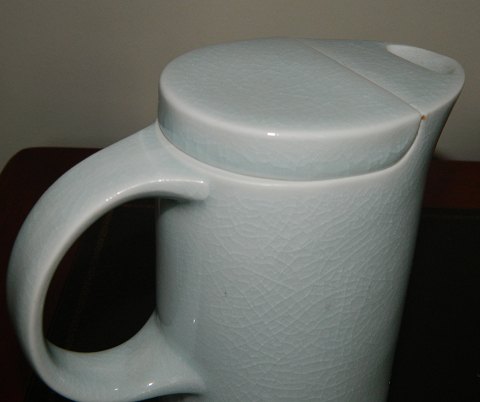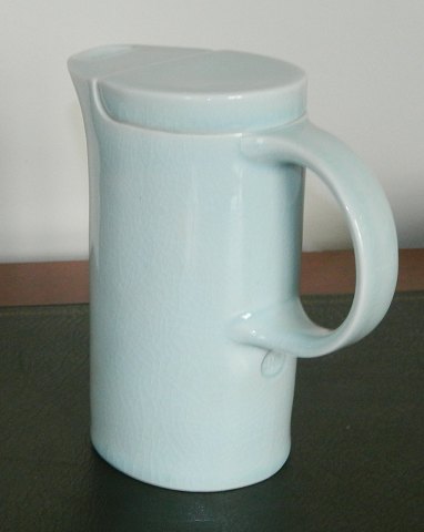 Kande i stentøj af Jane Reumert. Kanden er designet i 1972. Fremstår i god stand. Fabriksmærket fra Strandstræde Keramik på bunden samt kunstnersignatur under hanken med stempel-dekoration JANE. Lige knaps 17½ cm høj.