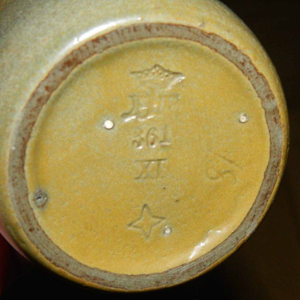 Langhalset vase i keramik fra skønvirkeperioden i Danmark fra P. Ipsen´s Enke. Produceret omkring 1920. Dækket af en olivengrøn gullig glasur. Fremstår i perfekt stand uden skader eller reparationer. Fabriksmærket på bunden. H. 18½ cm.