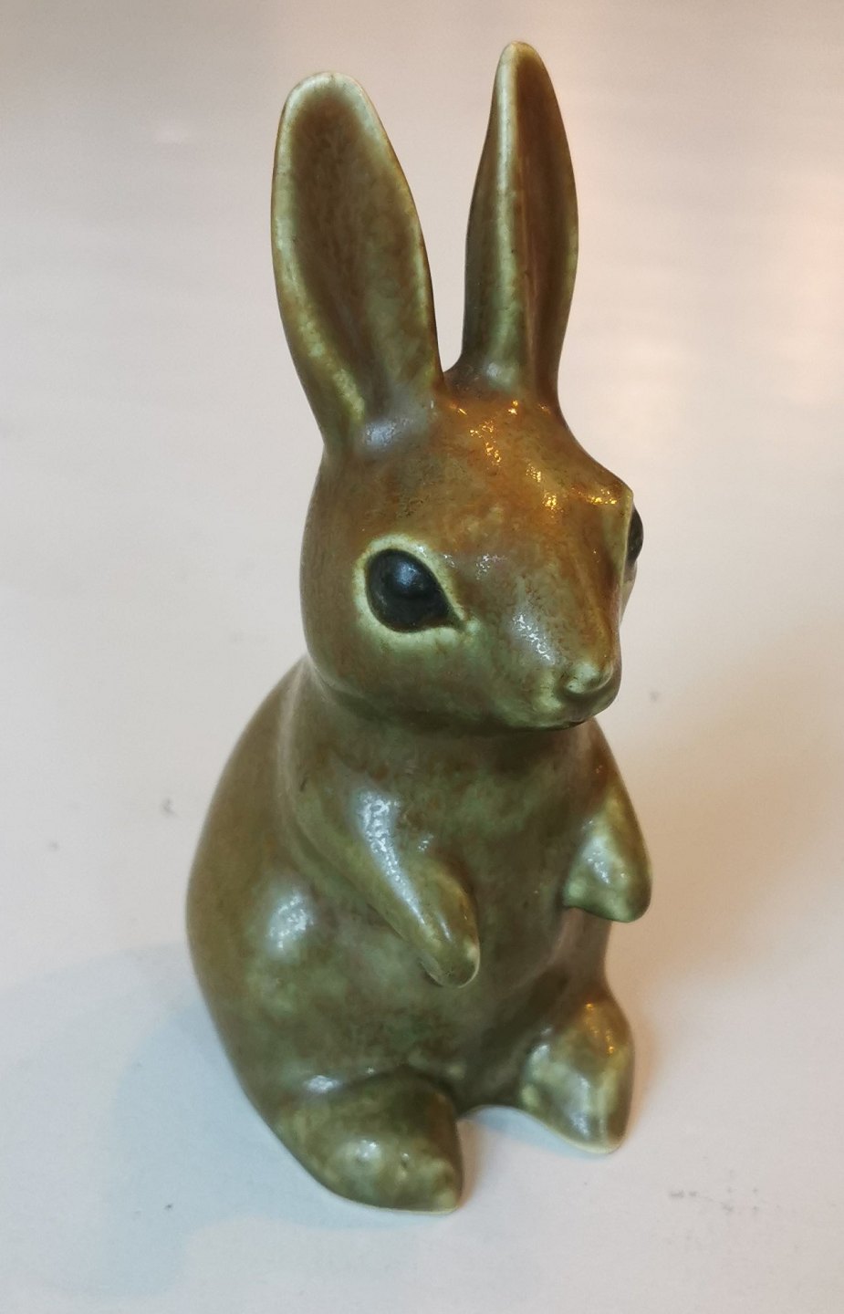 STOR FIGUR i keramik af kanin unge af Knud Basse, Vang, Bornholm. Dækket af en brug harepelsglasur. Fremstår i god stand uden skader eller reparationer. H. 16½ cm. Kunstnersignatur KB på undersiden.